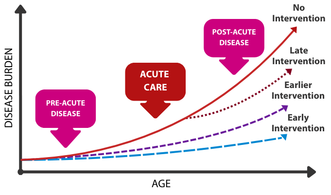 The proposed solution is reimagining acute care through evidence-based decision-making that delivers better results for Canadians. Acute disease doesn't just appear suddenly, and it doesn't end when the crisis is over. It exists within a broader continuum of care that begins well before and lasts long after the acute event.
