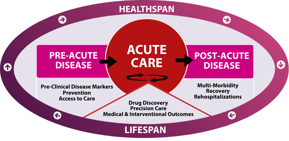 Our 2024-2034 vision is to reimagine acute care in Canada through research and evidence-informed decision-making. To support this vision, we propose CAre, a strategic framework designed to transform acute care delivery across Canada. This initiative aims to improve outcomes for Canadians living with complex conditions within ICRH's mandate areas across the lifespan. By addressing the full continuum of care (pre-acute, acute, and post-acute diseases), CAre seeks to prevent hospitalization for at-risk patients, improve outcomes of acute care medical and interventional procedures, and increase the efficiency and effectiveness of recovery for sustainable health.
