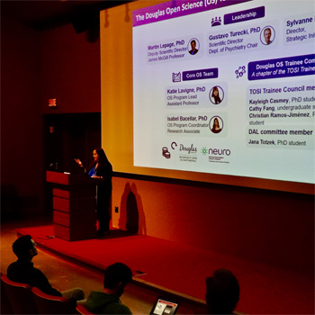 La science ouverte au service de la recherche en santé mentale au Centre de recherche Douglas![]() Dre Katie Lavigne En 2021, le Centre de recherche Douglas est devenu le premier établissement de recherche en santé mentale à adopter la science ouverte à grande échelle au Canada. Une telle approche favorise la collaboration et accélère les découvertes en santé mentale – il n’y a qu’à penser aux premiers mois de la pandémie de COVID-19, alors que le monde entier a collaboré à la mise au point rapide d’un vaccin. Notre programme de science ouverte change la façon de faire de la recherche en santé mentale en adoptant des approches éthiquement responsables. Surtout, nous faisons le lien entre de nombreux projets de recherche financés de manière indépendante au sein de notre institut, et plusieurs de nos chercheurs et projets adoptent graduellement des pratiques de science ouverte. Pour nous, la science ouverte va au-delà de l’ouverture croissante au sein de la communauté scientifique – nous devons mobiliser les utilisateurs de services et les participants à la recherche afin de collaborer avec eux. Ainsi, non seulement nous misons sur des innovations comme les mesures ou les ensembles de données ouvertes, mais nous priorisons les partenariats avec les patients et la coconception de projets avec des personnes ayant une expérience concrète. Nous espérons que nos efforts permettront de mieux comprendre et d’améliorer le traitement des troubles de santé mentale. Lectures supplémentaires